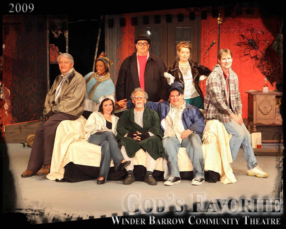 "God's Favorite" is based on the Book of Job in the Old Testament. The play takes place in a mansion where a tycoon, his wife, a prodigal son, and a pair of kookie twins live. One night a "messenger of God" arrives. Our modern Job refuses to renounce God so a fire is sent to wipe him out factory and home. Will he withstand the tests and his faith remain strong?